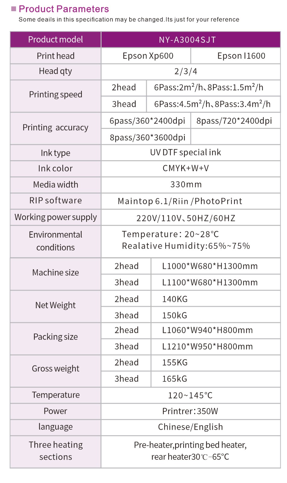 NY-A3004SJT A3 UV DTF Printer